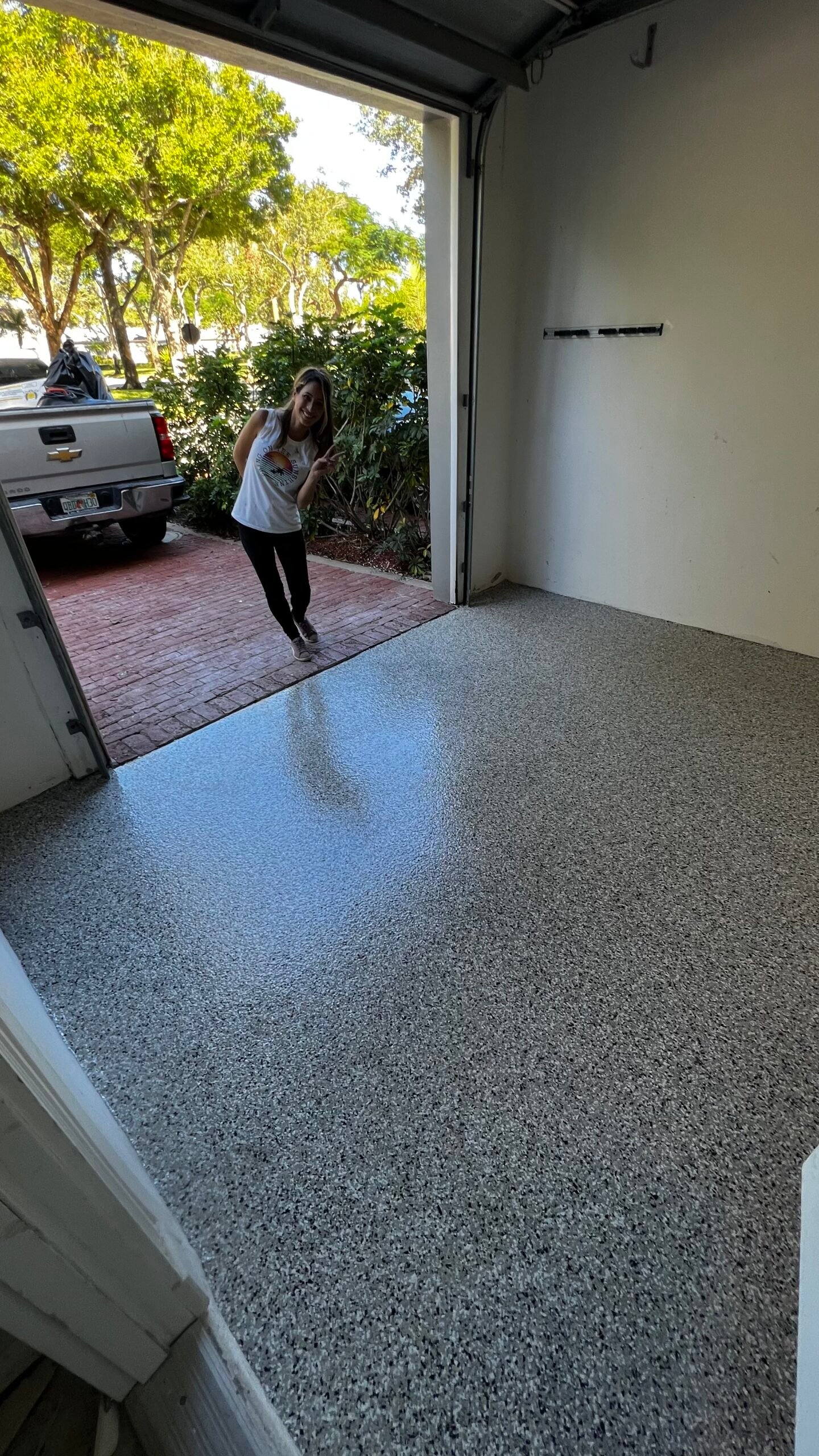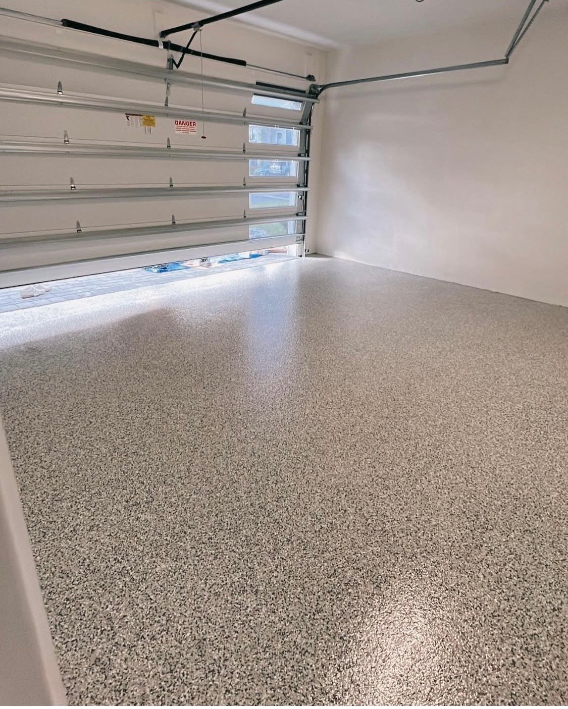Justin creates custom metallic epoxy floors designed as original works – each surface hand-layered for depth, movement, and visual impact. For clients who want a cohesive look, optional matching countertops can be designed to complement the floor. From these signature pieces to professionally executed garage flake systems and precision concrete polishing, every project is crafted with intention and built to perform.